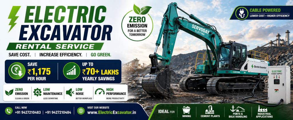 Servoday Plants & Equipments Limited through ElectricExcavator.in provides Electric and Dual Mode Excavators on Rental Service, designed for high performance, cost savings, and sustainable operations.